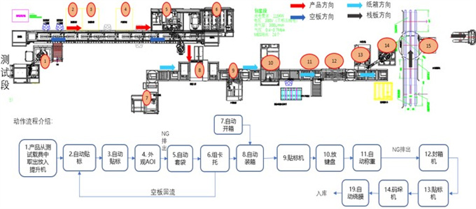 自动站点: 自动切换载板 自动贴标 外六面AOI 自动装袋 自动组装卡托 自动装箱 自动开箱 自动装键盘盒 自动码垛 自动绕膜