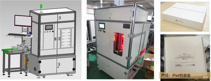 Apple ipad外箱: 自动称重 、贴标签、视觉检测标签设备 设备特点:1.称重精度要求:±0.05克 2.标签位置精度:±0.1mm